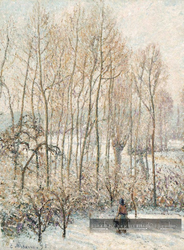 Das Werk mit dem Titel Sonnenlicht auf dem Schnee am Morgen; wurde gemalt von Camille Pissarro im Jahr 1895.