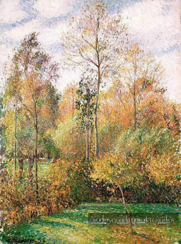 Titel des Gemäldes: Herbst, Pappeln, Éragny. Gemalt in 1894 von Camille Pissarro.